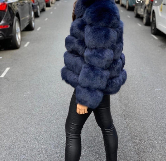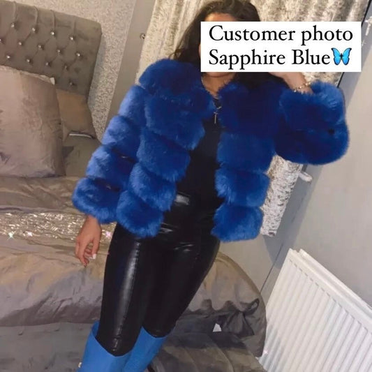 Classic 5 Row Sapphire Blue Faux Fur Jacket