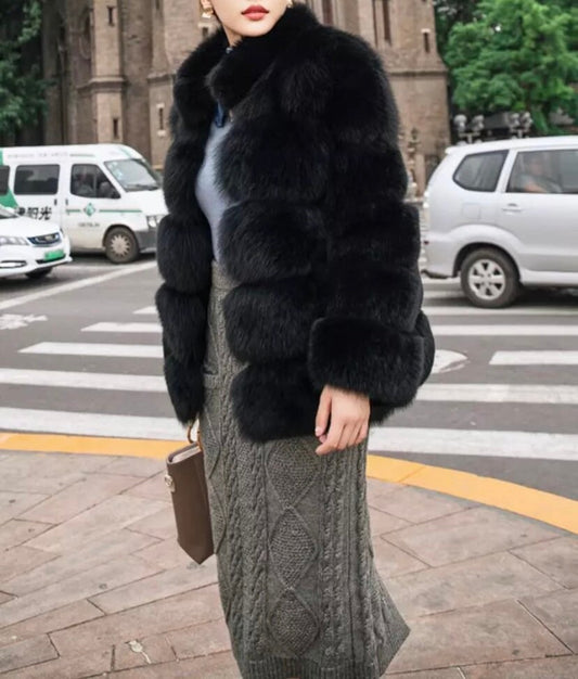Chelsea 5 Row Faux Fur Jacket with Collar