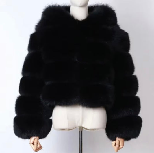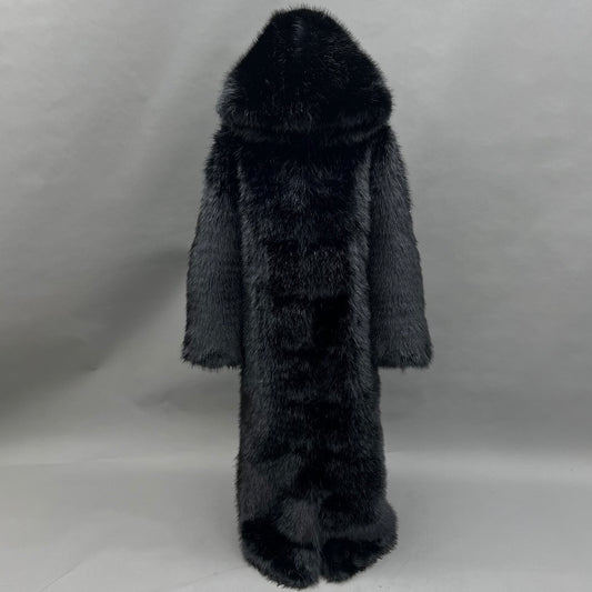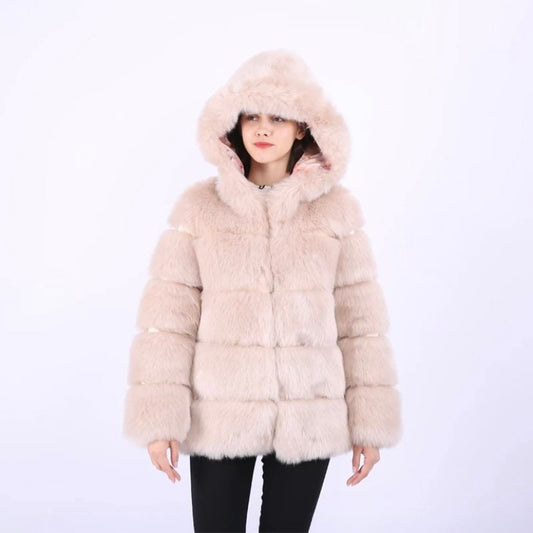 Premium Hooded 9 Row Faux Fur Coat With Hood