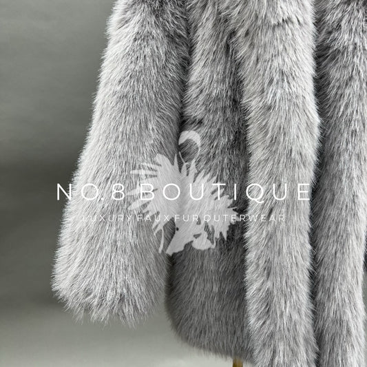 Discover our elegant selection of long faux fur coats for women and long faux fur coats for men. Wrap yourself in luxury with our durable and plush faux fur, designed to keep you warm whilst elevating your outfit. From show stopping floor length faux fur coats to knee length styles, discover your perfect long faux fur coat at No.8 Boutique London.