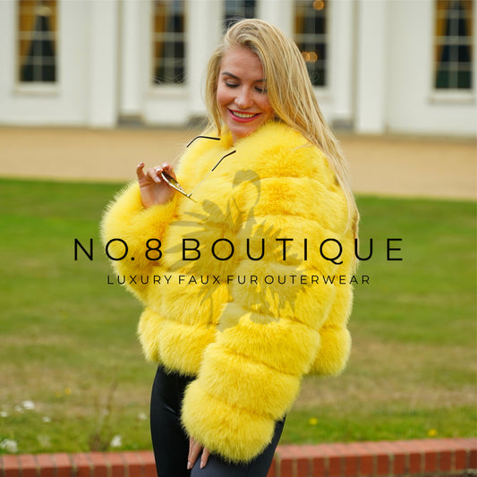 Brighten up your style with our yellow faux fur jackets and yellow faux fur coats at No.8 Boutique London. These vibrant outerwear options are perfect for those looking to inject some fun and sunshine into their winter wardrobe. From soft pastel yellows to bold mustard tones, each piece is designed to make a statement and provide warmth. Whether you're looking to stand out in the crowd or just add a cheerful touch to your daily outfits, our yellow faux fur jackets and coats are the perfect choice. Wrap yourself in the cozy luxury of our yellow faux fur jackets and turn even the dreariest days into something special. Shop now and find the perfect yellow faux fur jacket or coat to brighten your cold-weather collection.
